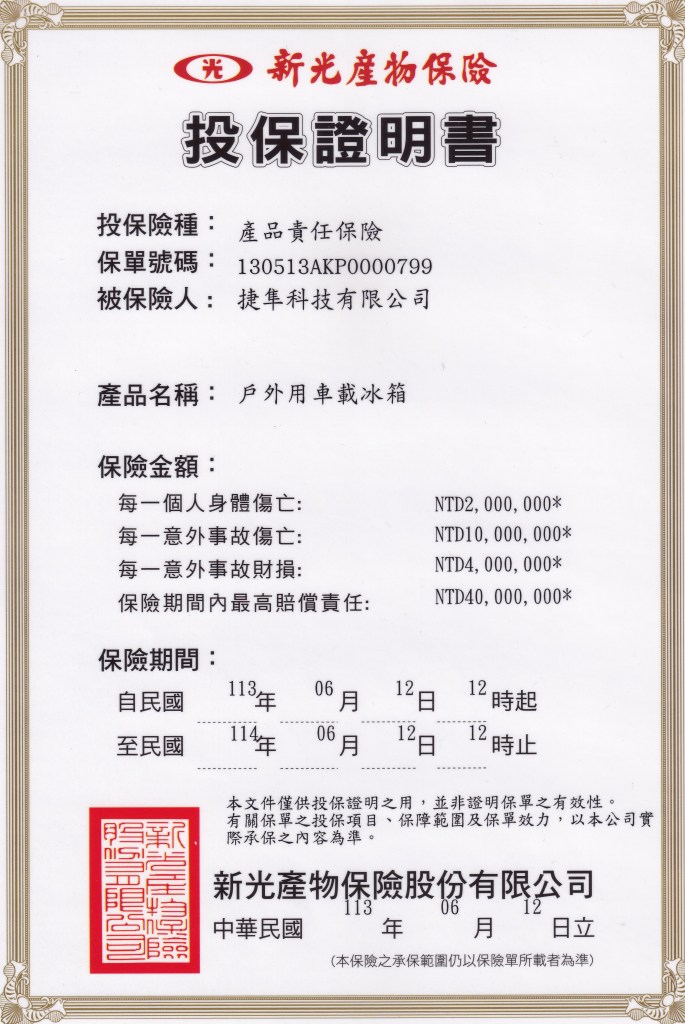 產險投保證明書-車載冰箱