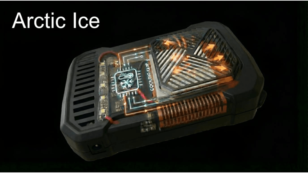 碾壓級的製冷效能:非普通製冷片風扇可比擬 市面上的普通製冷片風扇往往因功率不足,僅能提供微弱涼感。Arctic Ice 採用工業級高瓦數製冷架構,在核心製冷能力與熱交換效率上取得革命性突破,帶來真正有感的「冰風」體驗。