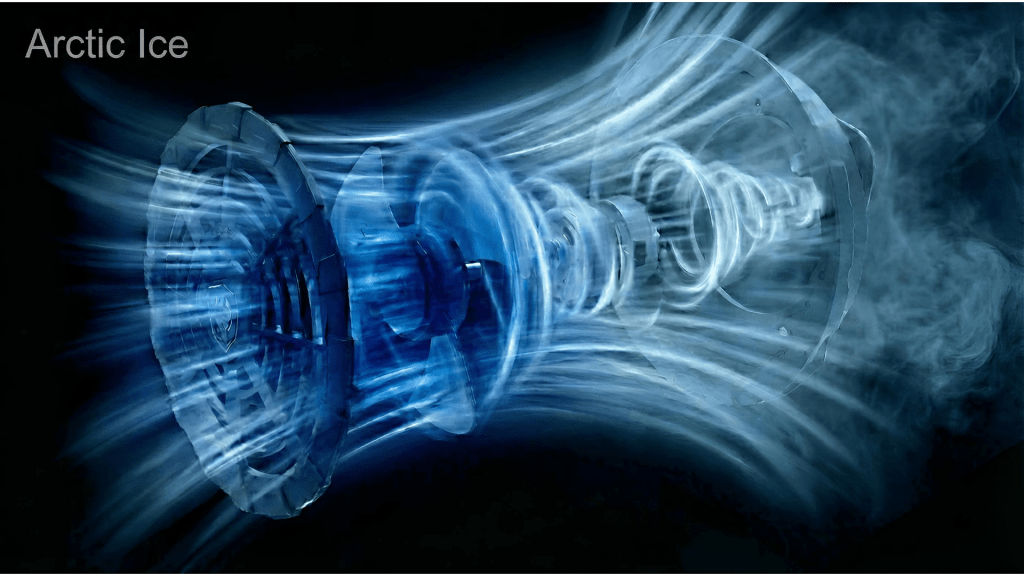 極速降溫意象: 啟動瞬間,藍色渦旋氣流奔騰,這不僅是視覺上的震撼,更是對「極地般瞬間凍感」的實力承諾。Arctic Ice 不僅是推動空氣,而是產生高壓、高集中的強力渦流,直擊核心熱源。